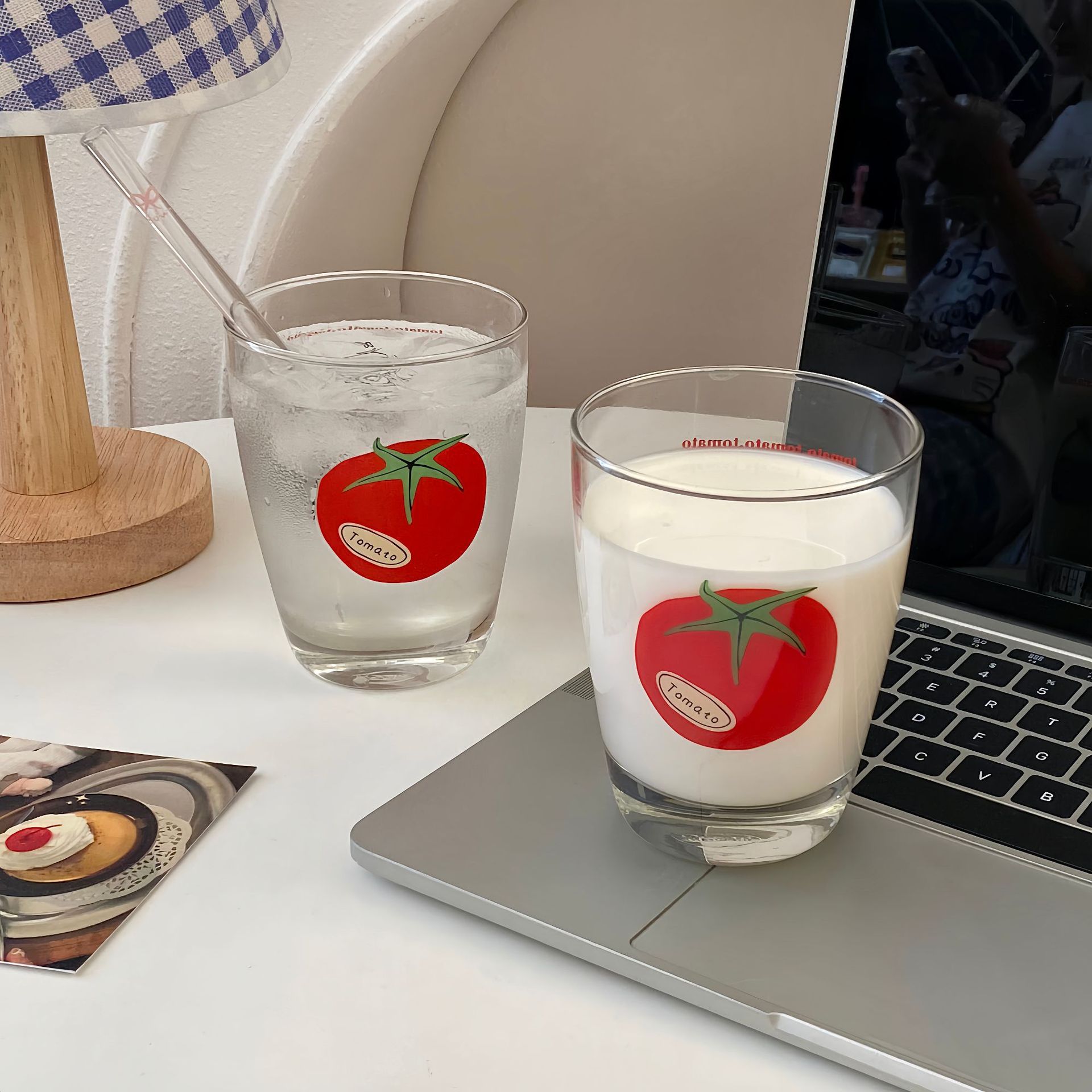 インス風高見えトマトガラス韓国風シンプルミルクカップジュースカップ厚底透明家庭用ドリンクカップ