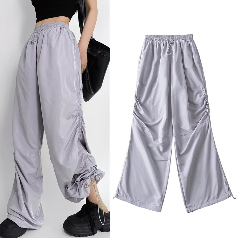 欧米風INSギャル引き縄速乾直筒工装ズボン女性秋の薄いタイプのゆったりとしたカジュアルなワイドパンツ