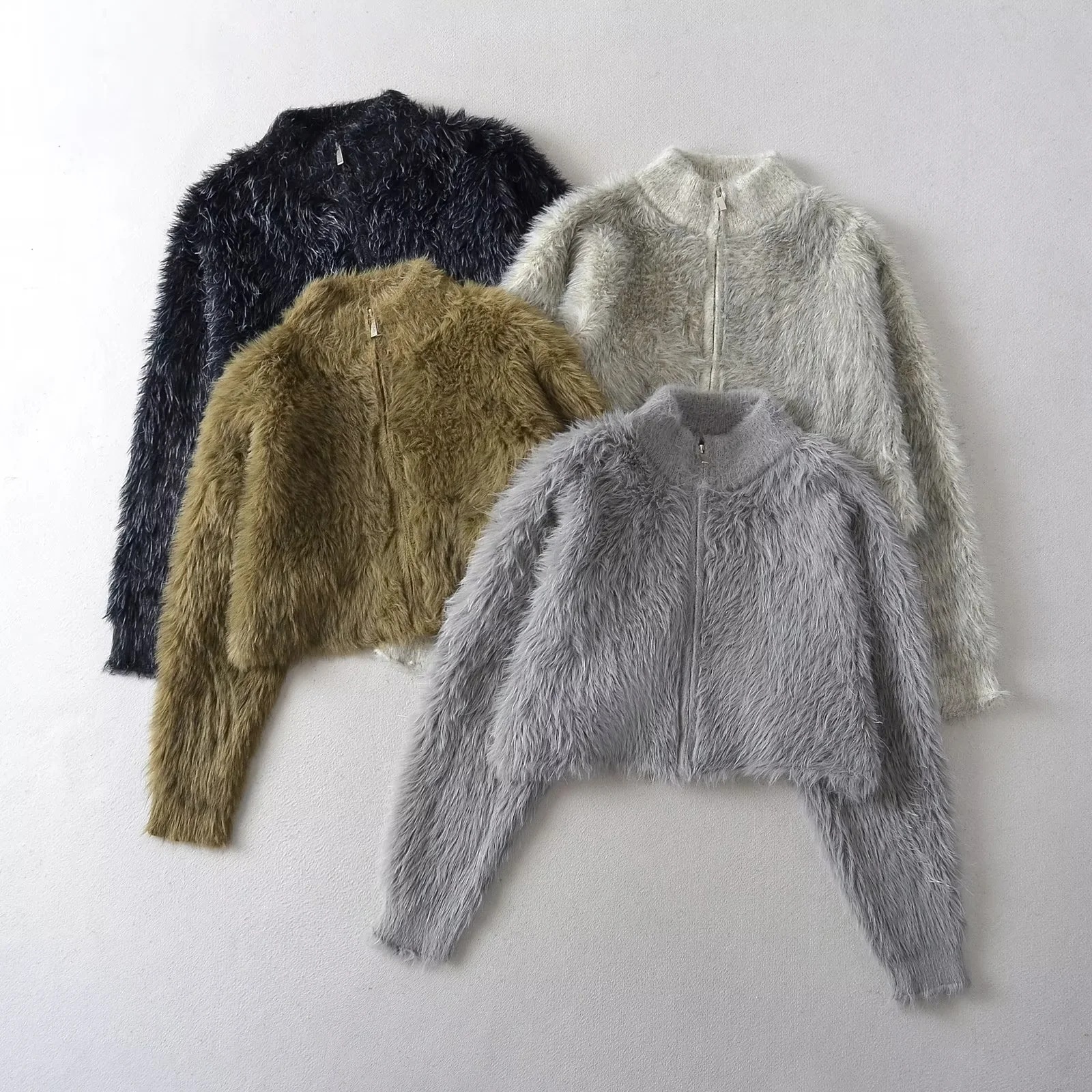 ミンクの毛のふわふわしたセーターのコートの女性2023秋冬のゆったりしたショートカーディガンの高級感のあるニットの上着のファッション