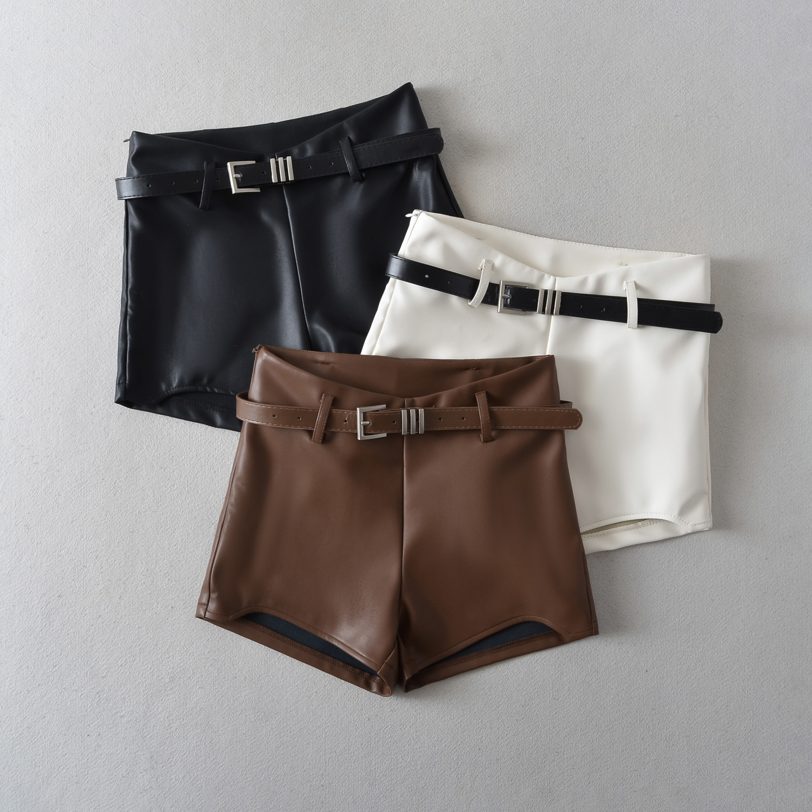 セクシーなvウエストのpu皮の半ズボンの女性の2023秋冬の項のギャルのタイトな腰はやせています。