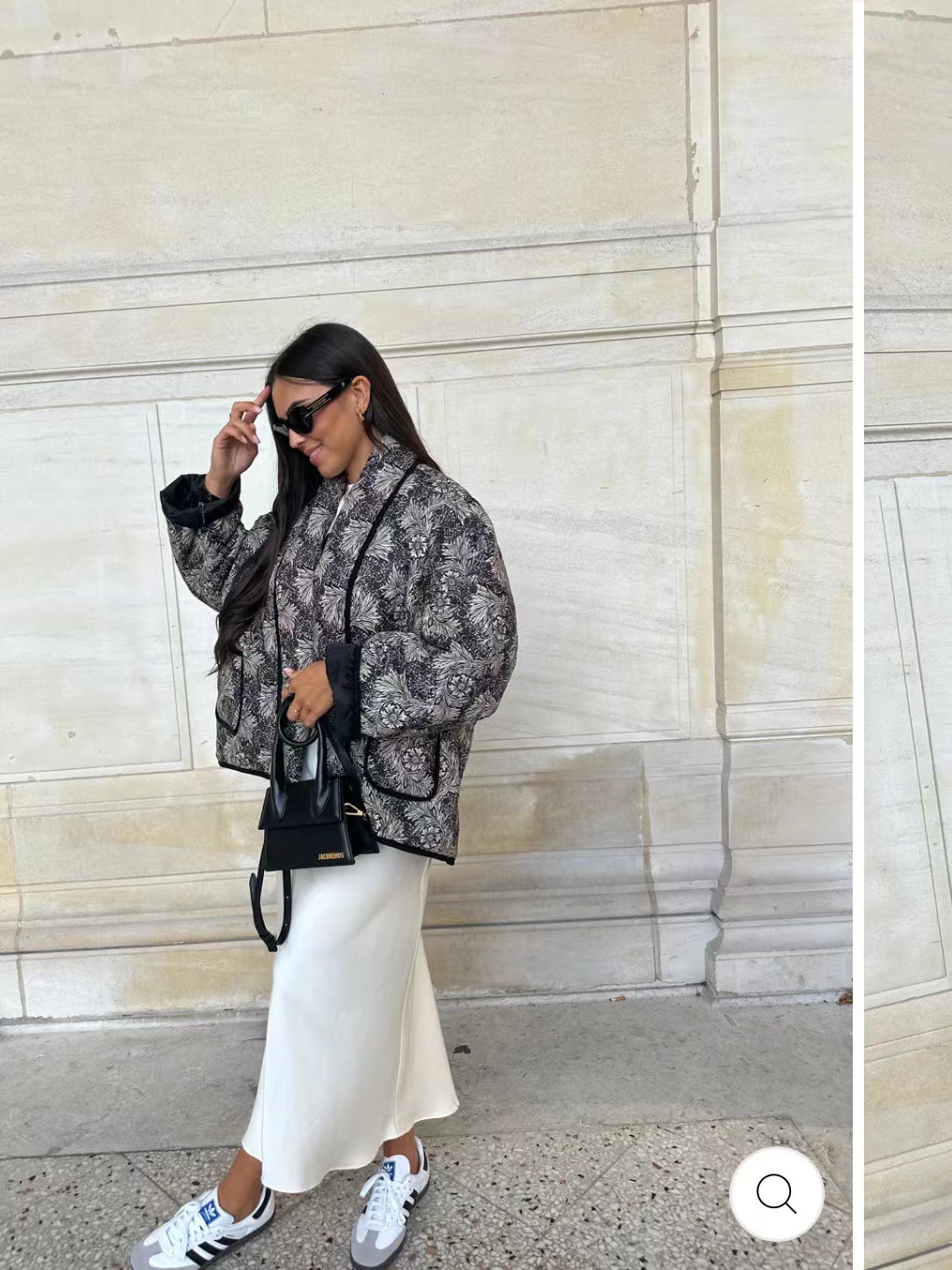 速売通女装2023秋冬花プリントゆるいポケットキルティング綿服コート女