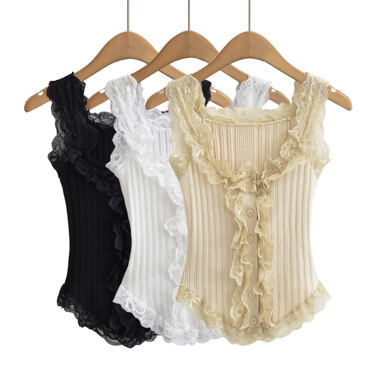 純粋な欲望スタイルの胸パッド付きベストセクシーなホットガールレースステッチスリムセクシーなボトムススリングトップ