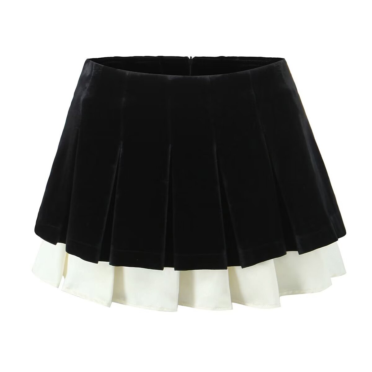 10以内にF2秋ステッチコントラストプリーツスカート2024ベルベット72スカート新しいヨーロッパとアメリカンスタイルブラック