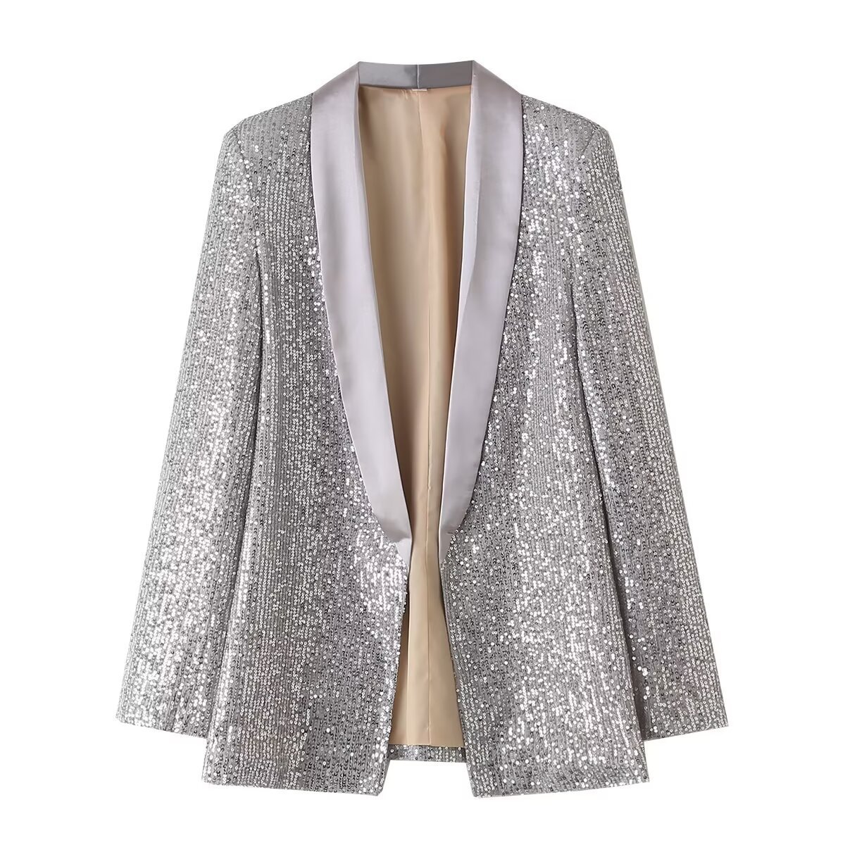 ZRクロスボーダー欧米レディース欧米風2024春新作気質通勤スパンコール半袖スーツジャケット