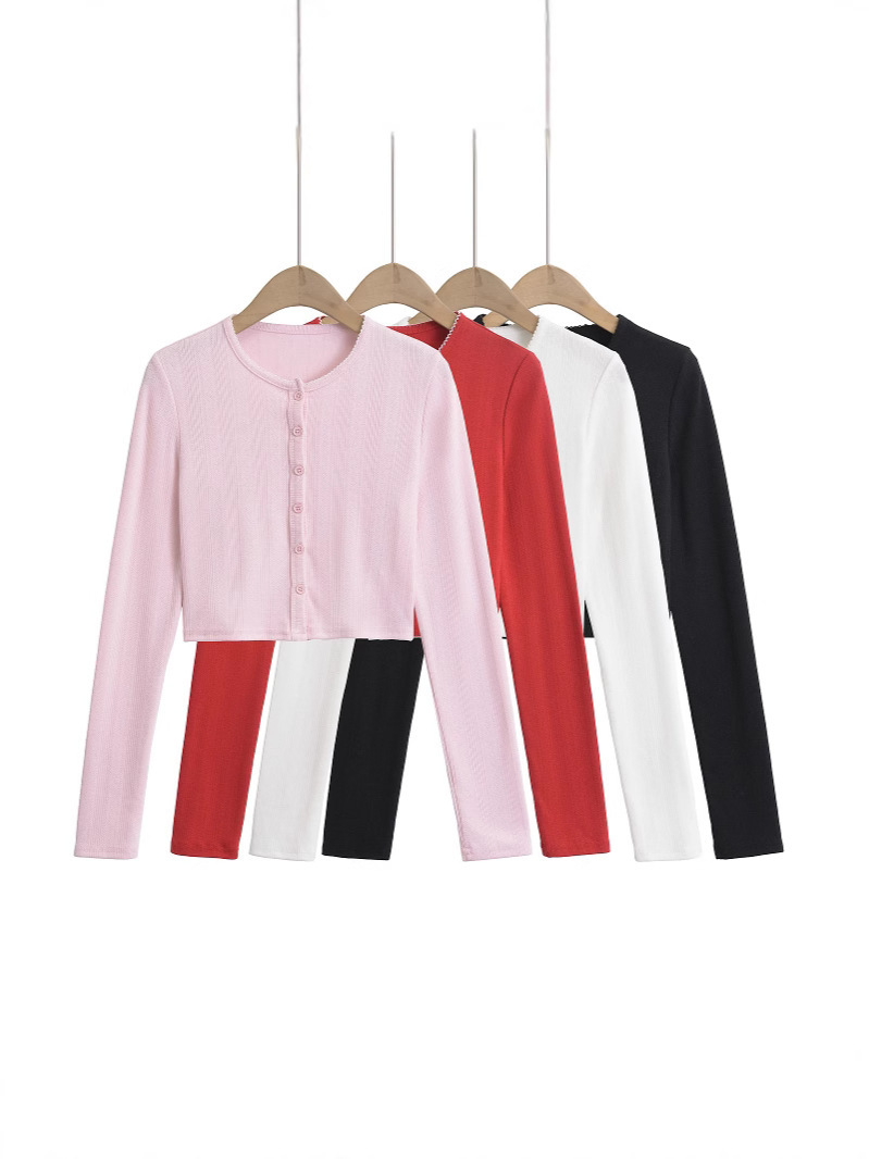 25種類のDD24118夏の新型欧米風六粒ボタン曲歯丸襟長袖カジュアル短いニットカーディガン