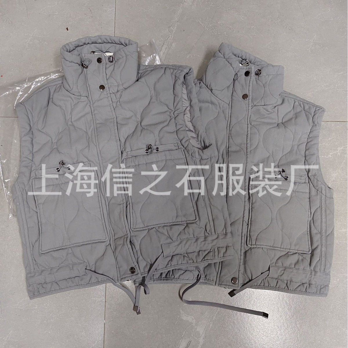 A秋冬新作女性通勤小カン肩馬甲外着立襟ゆるい菱格綿服ベスト4088241
