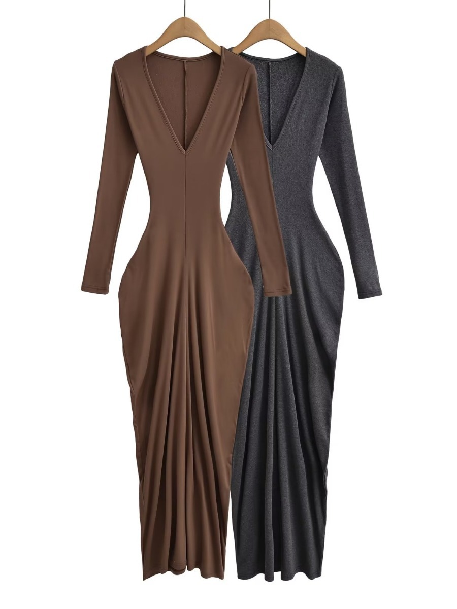 2023秋の新型長袖高腰がやせているvネックの毛磨きギャルは純色のワンピースのロングスカートの卸売りを修理します。