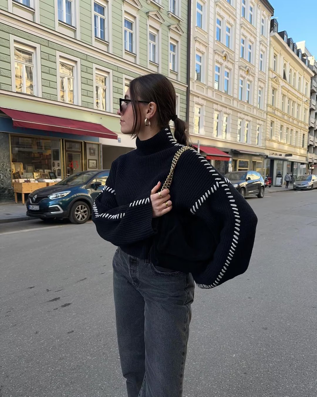 2023秋の新しいギャルの背中のひもの欧米のブロガーのゆったりした女性のニットのセーター