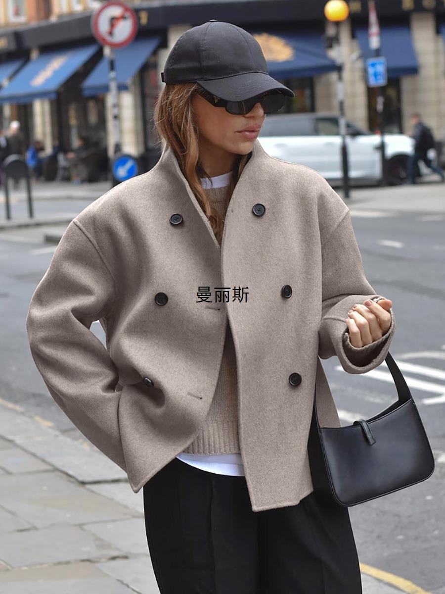 茶色のフランス風vネックのダブルボタンのジャケット2023欧米の新型外国貿易秋冬スーツの婦人服