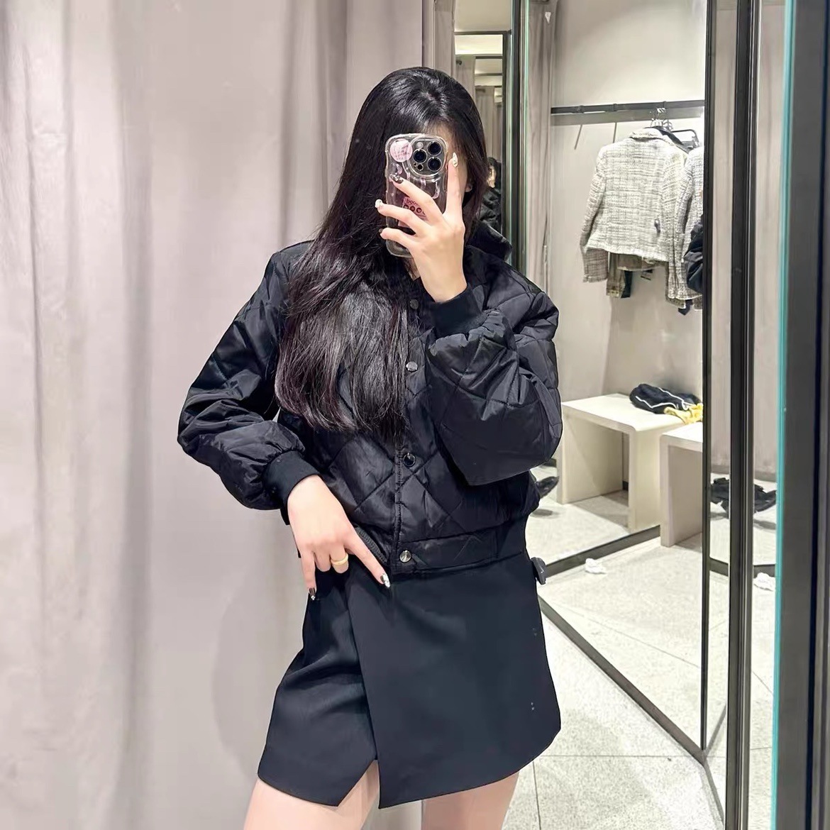 秋冬の新型の軽薄な百合の黒色の短い綿の服のパイロットのジャケットの上着の女性の3046227