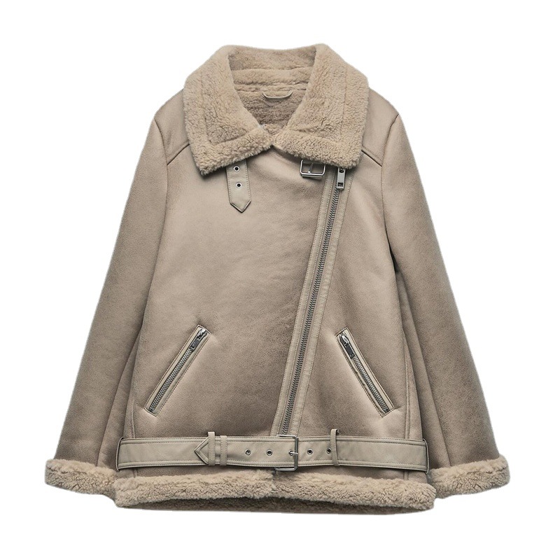 春の新型毛皮一体金属バックル長袖立襟両面ジャケット女2969041