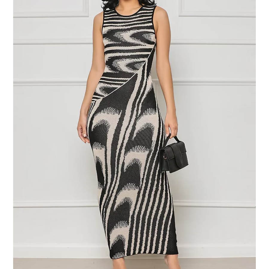 欧米の卸売2023夏の新型三色のシックな抽象的なニットのロングスカートのスリムなワンピースのT10-A233