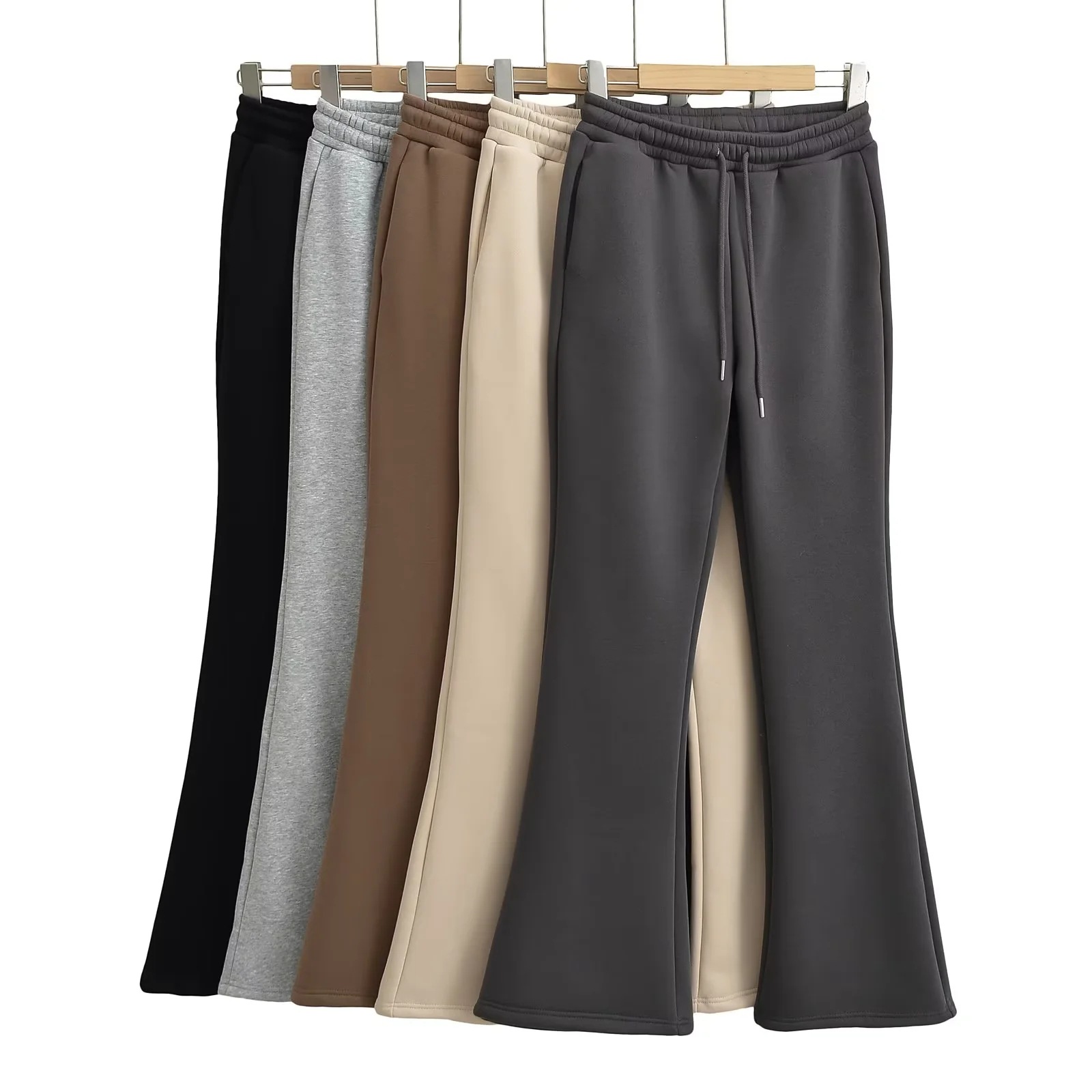 アメリカの秋冬の新型の低い腰の運動のズボンの女性の純色の保温のベルベットの衛のズボンのカジュアルなモップのズボンの小さいズボン