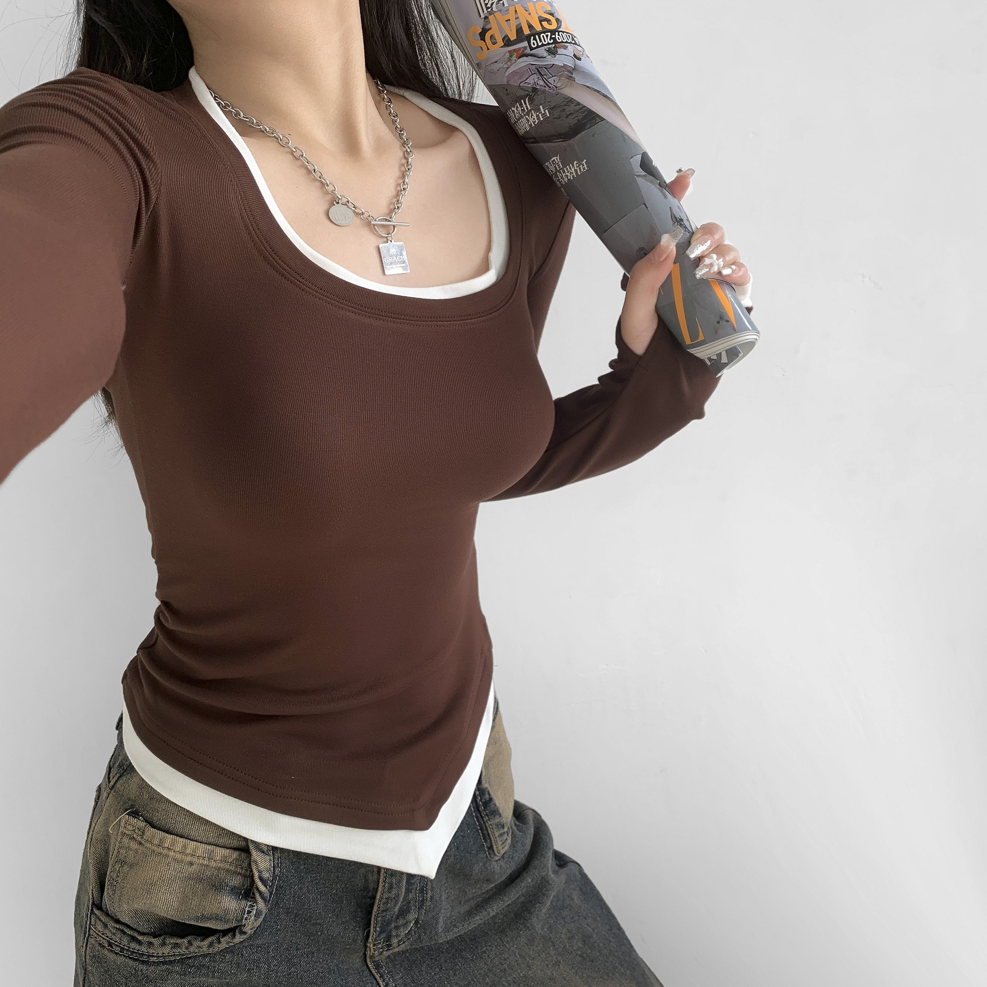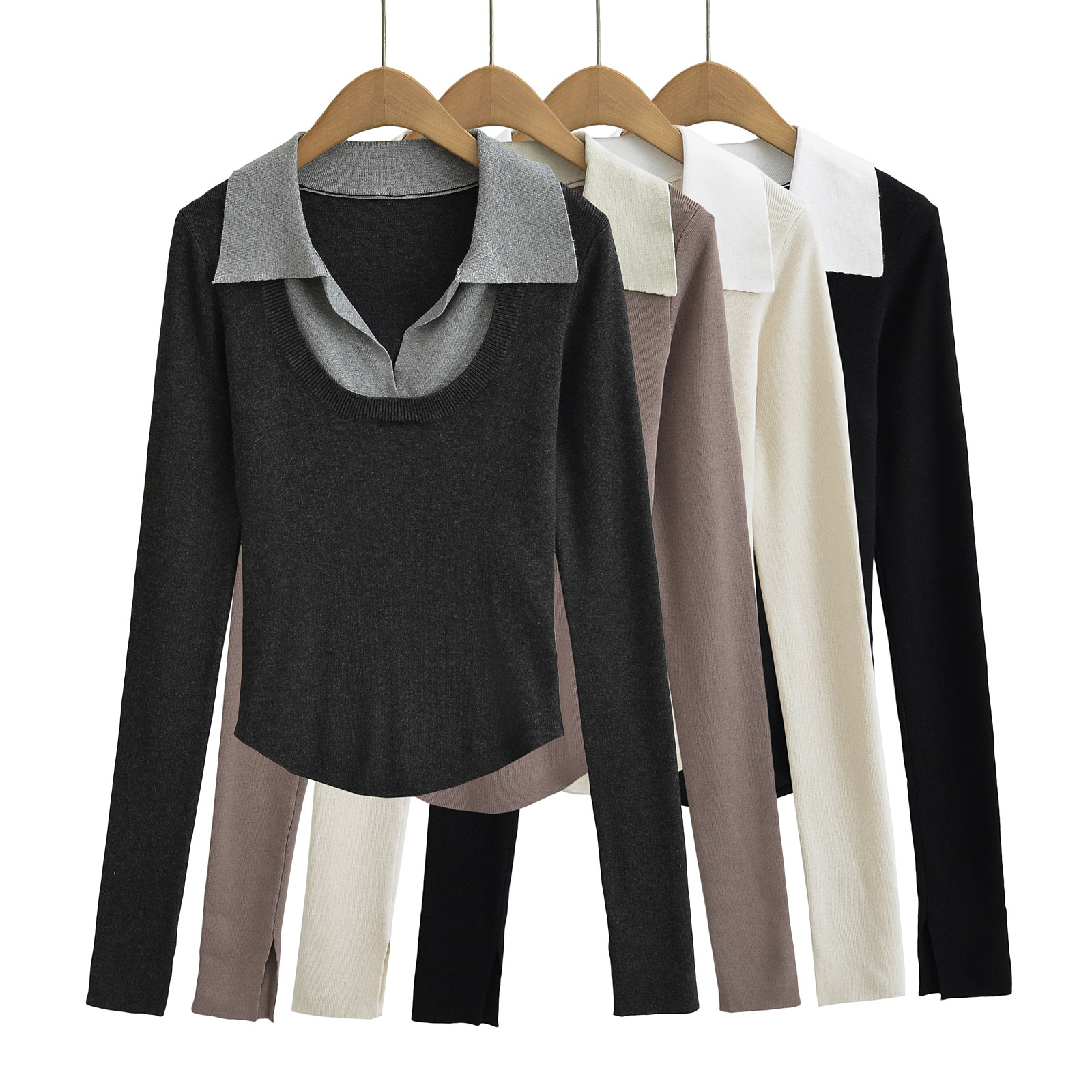 2023秋冬ギャルは毛の長袖の底のシャツの女性をつかんで色の弾力を合わせて身を修めます。