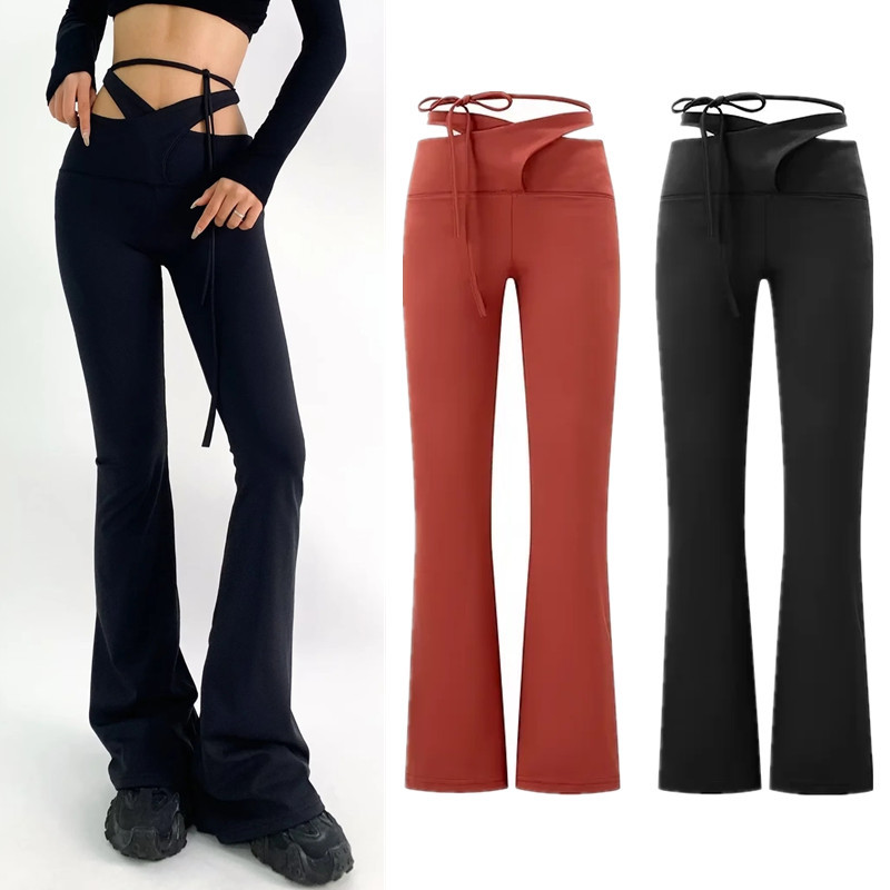 国境を越えた欧米風秋のセクシーな腰の高いヨガパンツの女性の純色の弾力的なスリムなラッパズボンのズボン