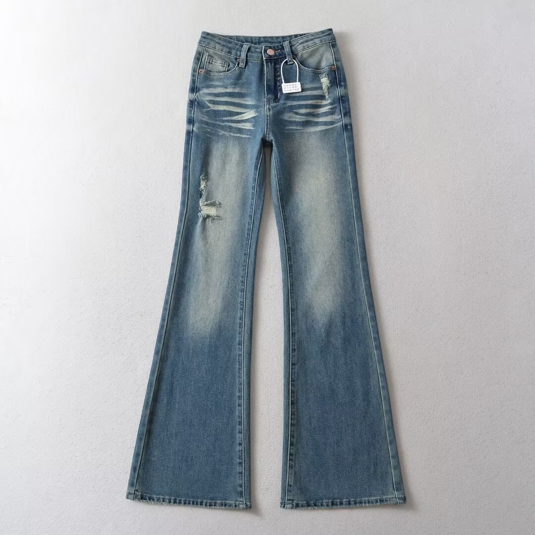 2023秋冬ギャルレトロ水洗いハイウエストマイクロラッパジーパン