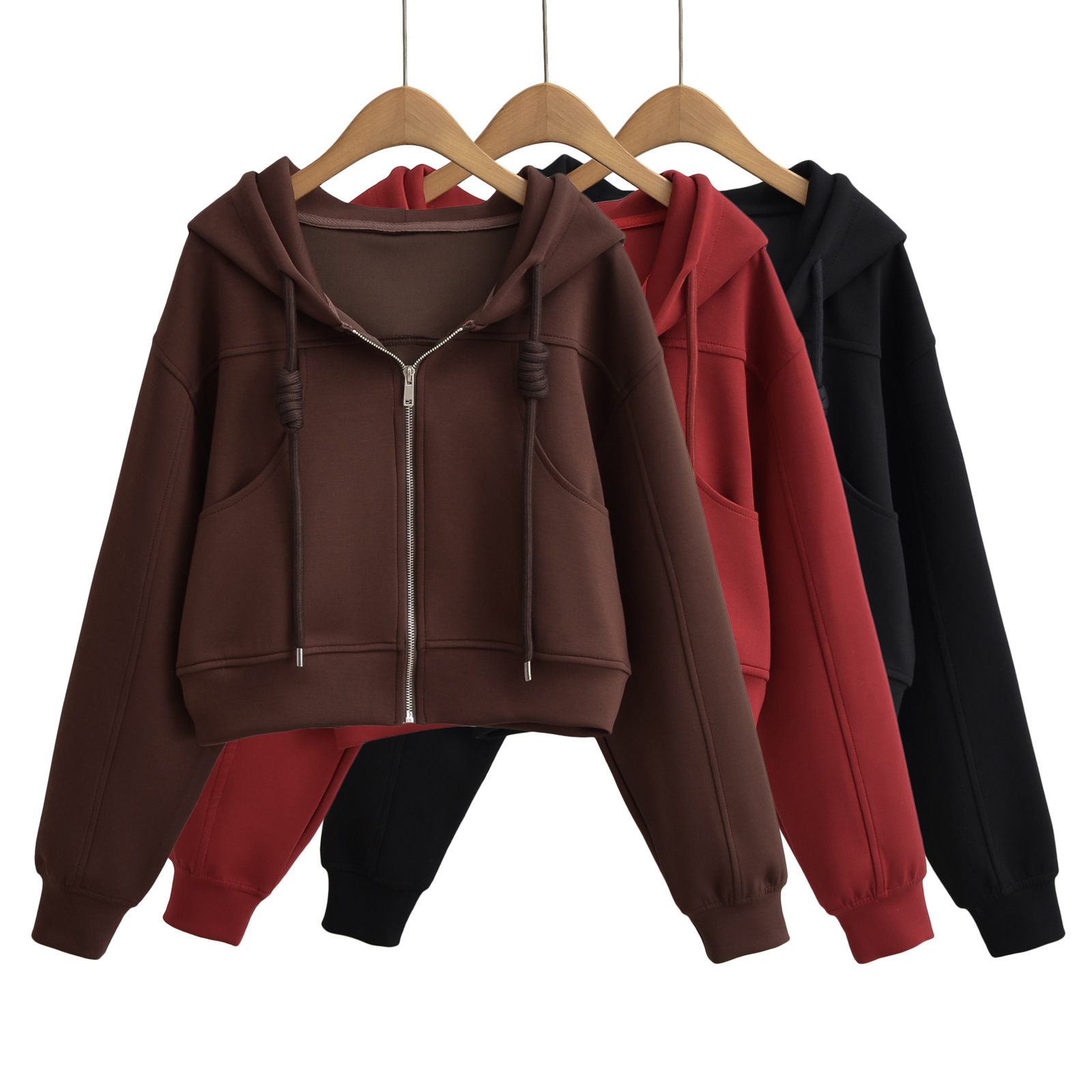 アメリカ式2023秋冬の短いゆったりしたパーカーの女性のパーカーのギャルのジッパーのカジュアルなカーディガンの上着の卸売り