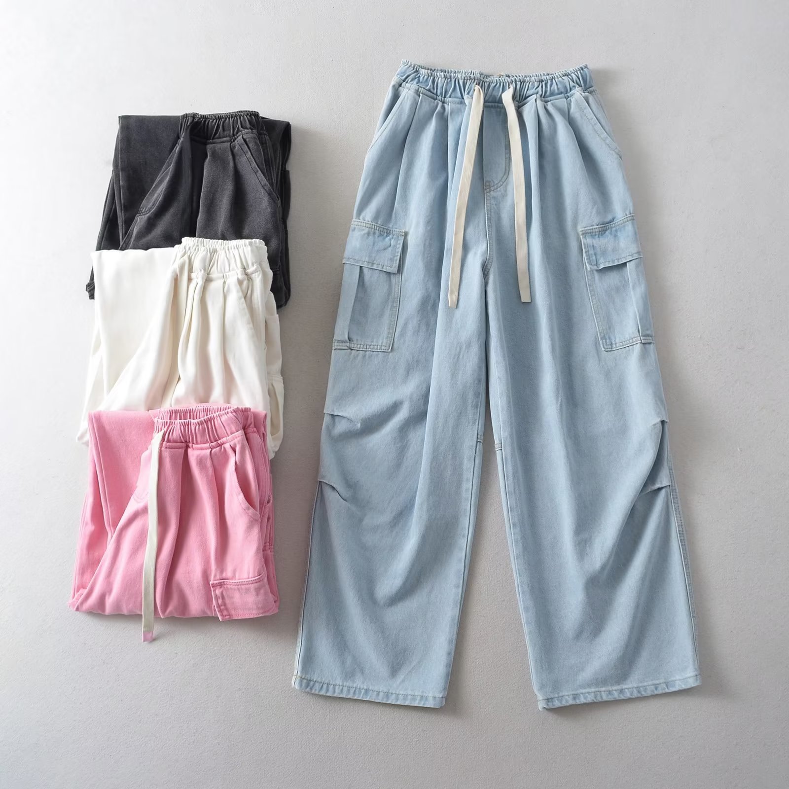2023秋の新型衛ズボンの女性は腰を緩めてひものストレートズボンを引っ張ります。