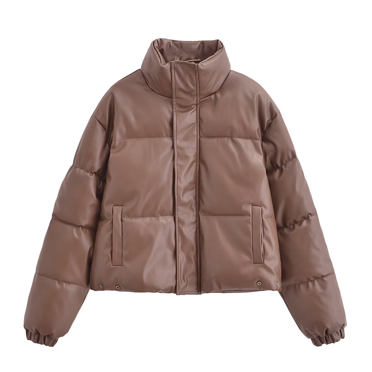 2023秋の新商品欧米の国境を越えた婦人服の街頭ファッション立襟は皮の綿服のコートの9-2-64630をまねます。