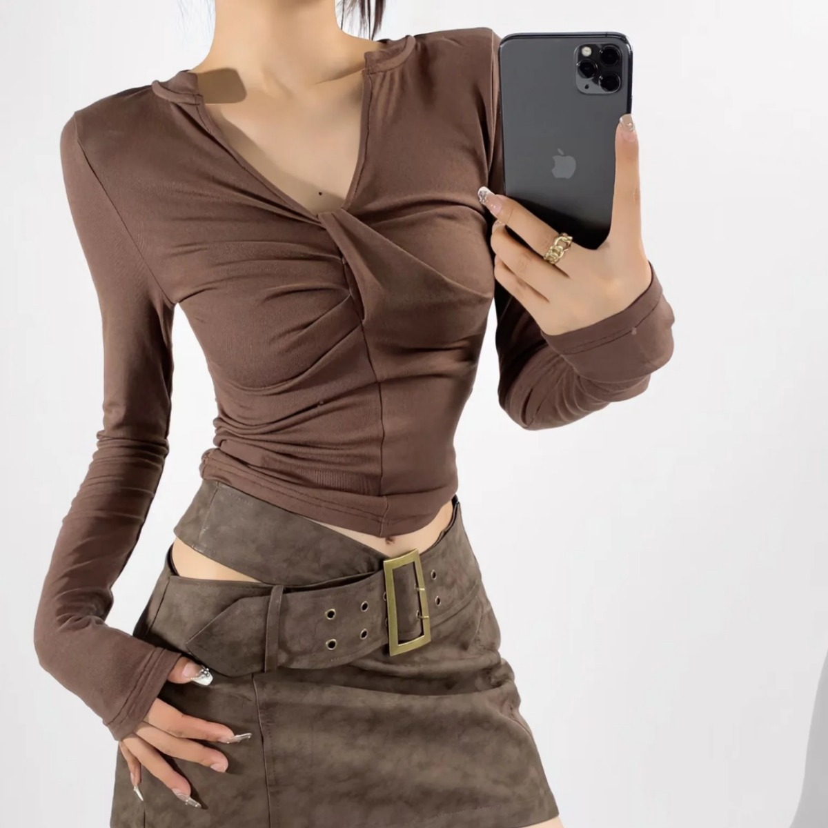 2023秋のギャル百合デザインのvネックの底のシャツの長袖のtシャツの女性は2人で毛をつかんで身を修める上着を着ます。
