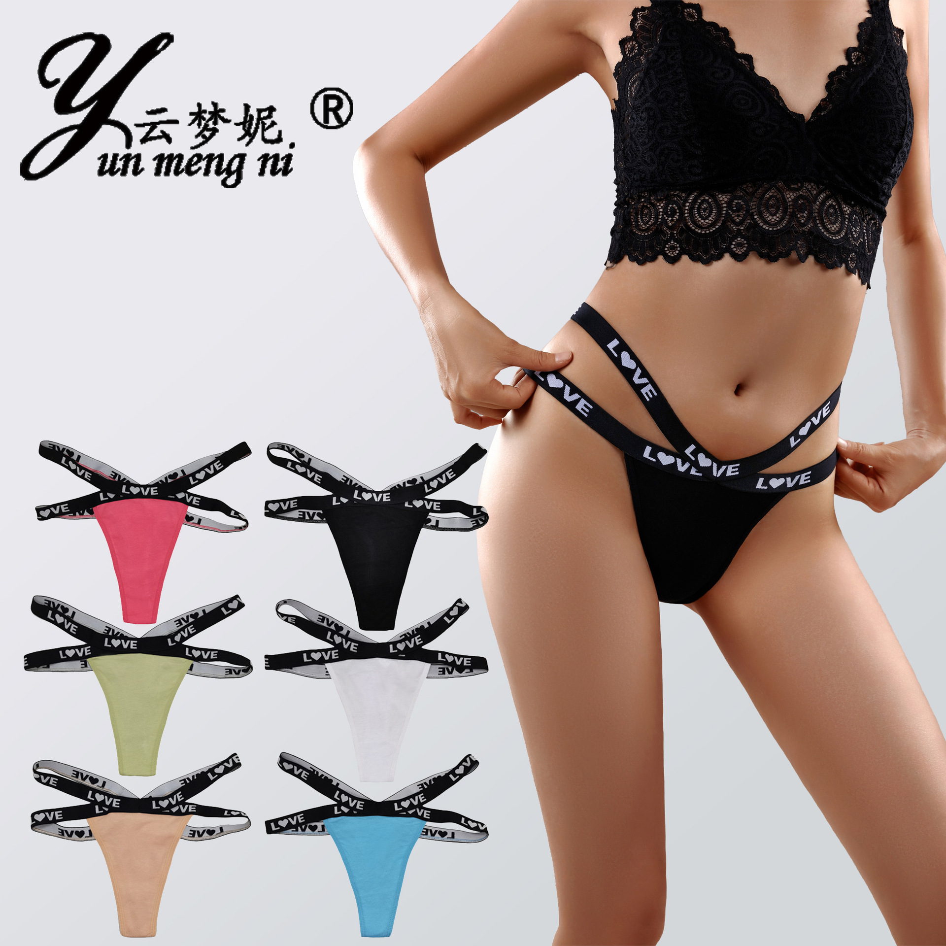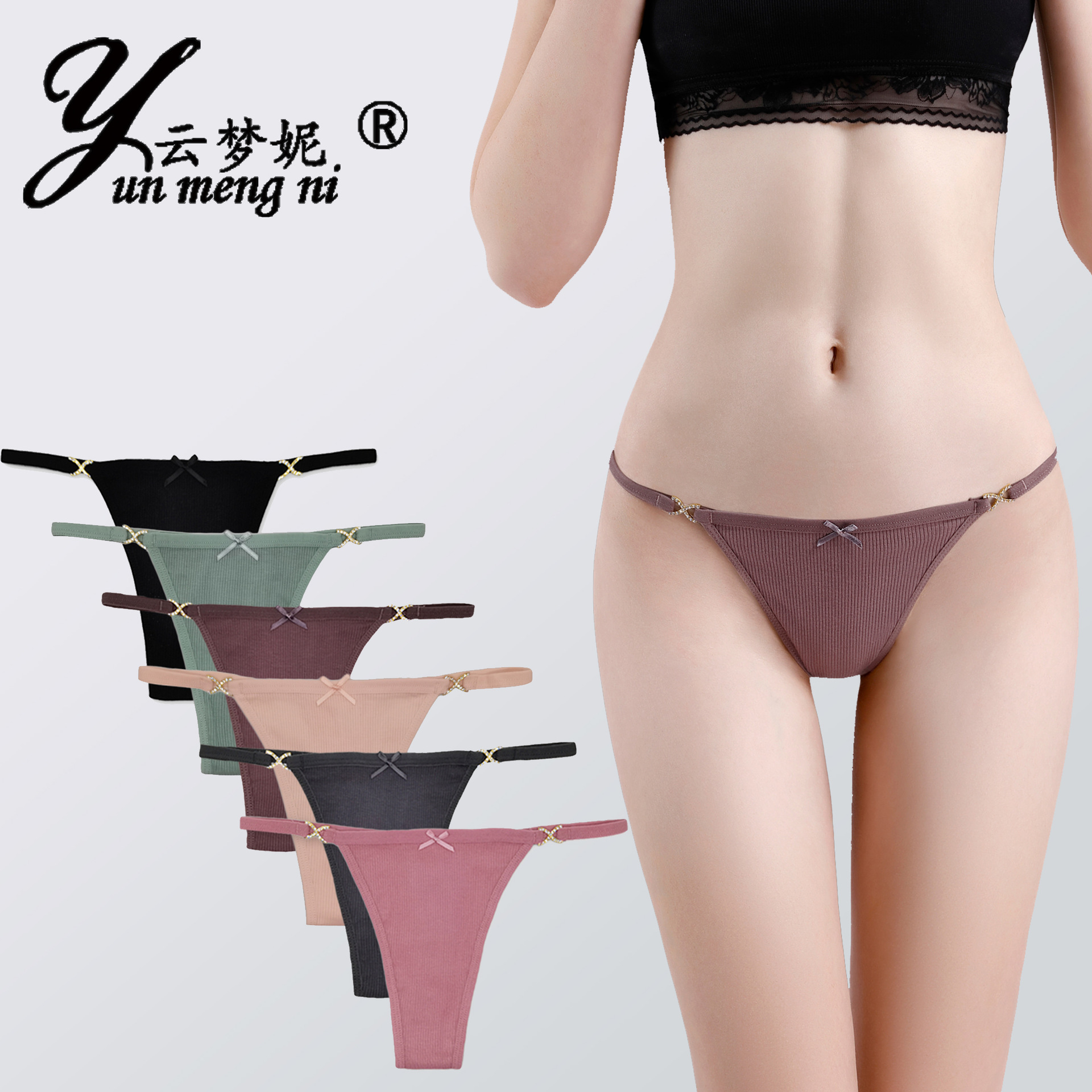 雲夢尼セクシー女性t字ズボンファッションアマゾンebayクロスボーダーリブ純色対外貿易女性下着