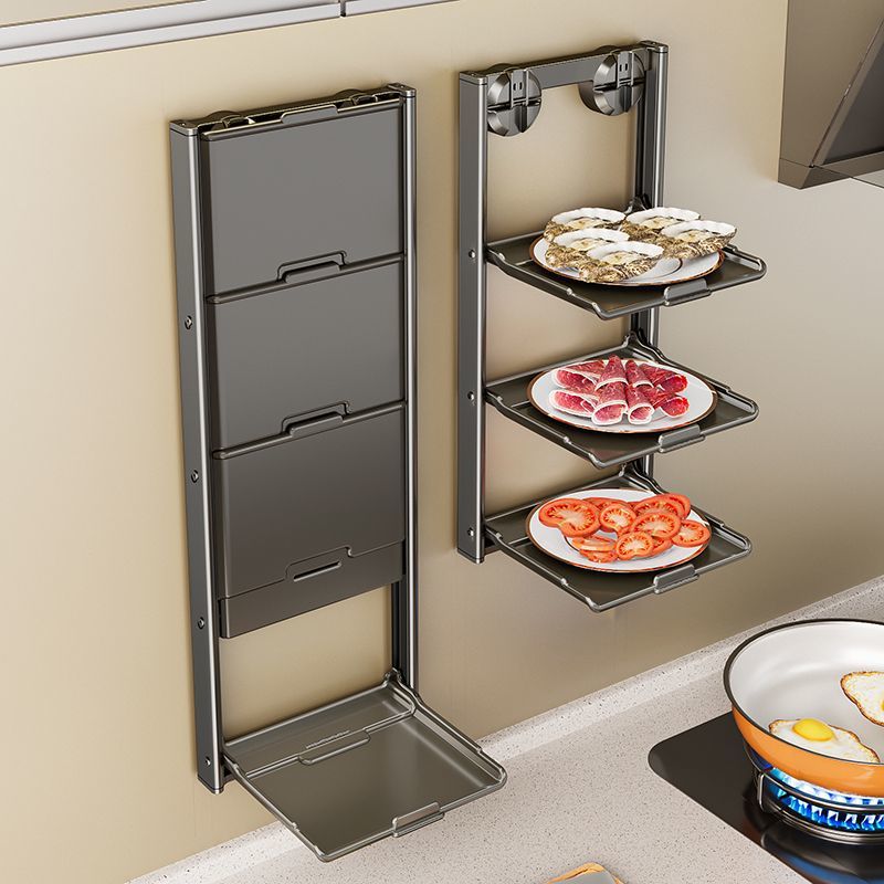 キッチン収納ラック吸盤式多層食品準備収納ラックパンチングスペースなしアルミニウム厚みのある折りたたみスパイスラック