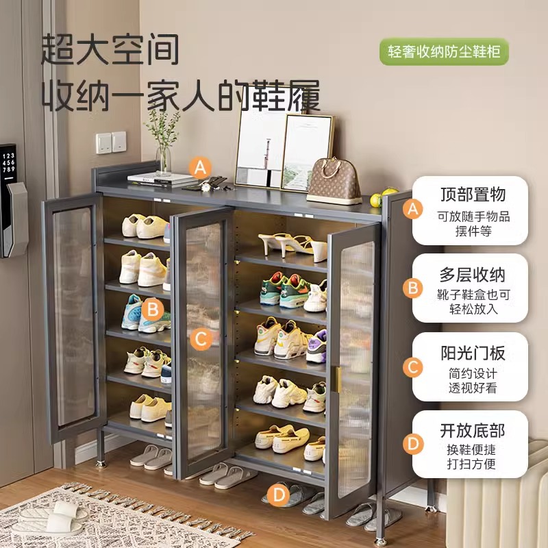 靴キャビネット家庭用大容量スチール玄関キャビネット屋内ドア収納キャビネットシンプルなロック付き多層靴ラック