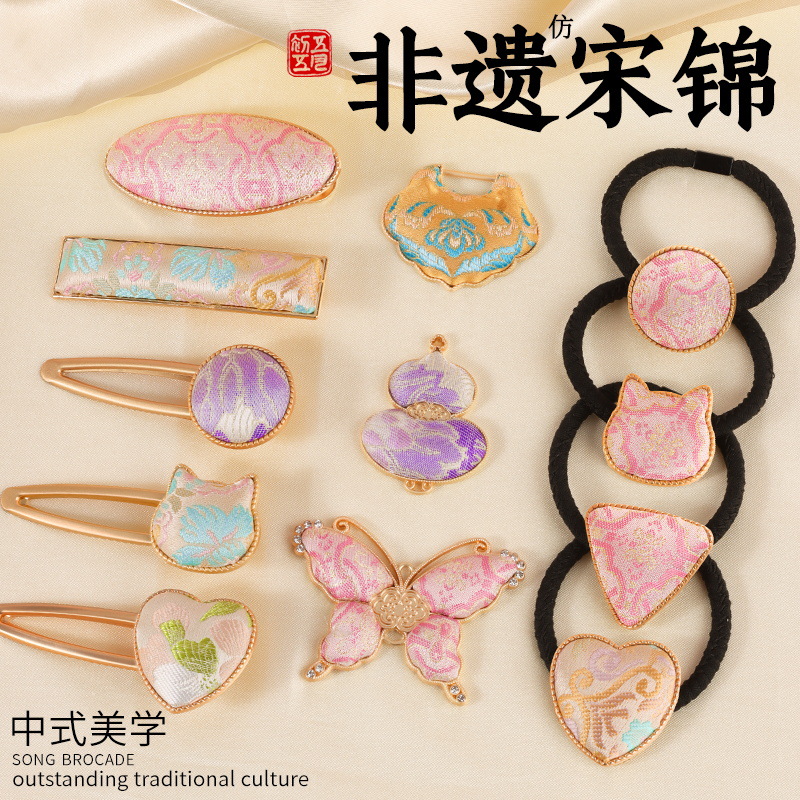 無形文化遺産手作り宋錦 DIY 素材パッケージヘアピン蝶ひょうたんヘアアクセサリーヘッドバンドブローチベース教師の日ギフト