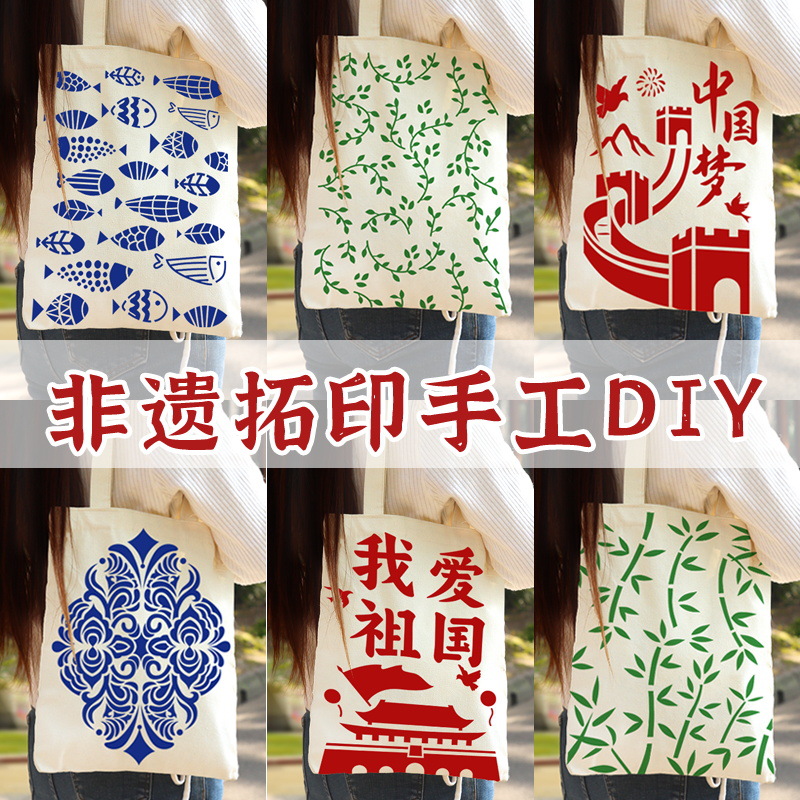 拓印キャンバスバッグ非遺品手作りdiy材料バッグテンプレート印刷落書き麻布袋愛国テーマ