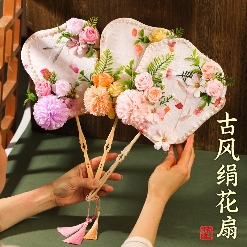 手作り DIY シルクフラワーファン無形文化遺産古代スタイルラウンドファン素材パッケージアクセサリーチームビルディング教師の日ダンス漢服