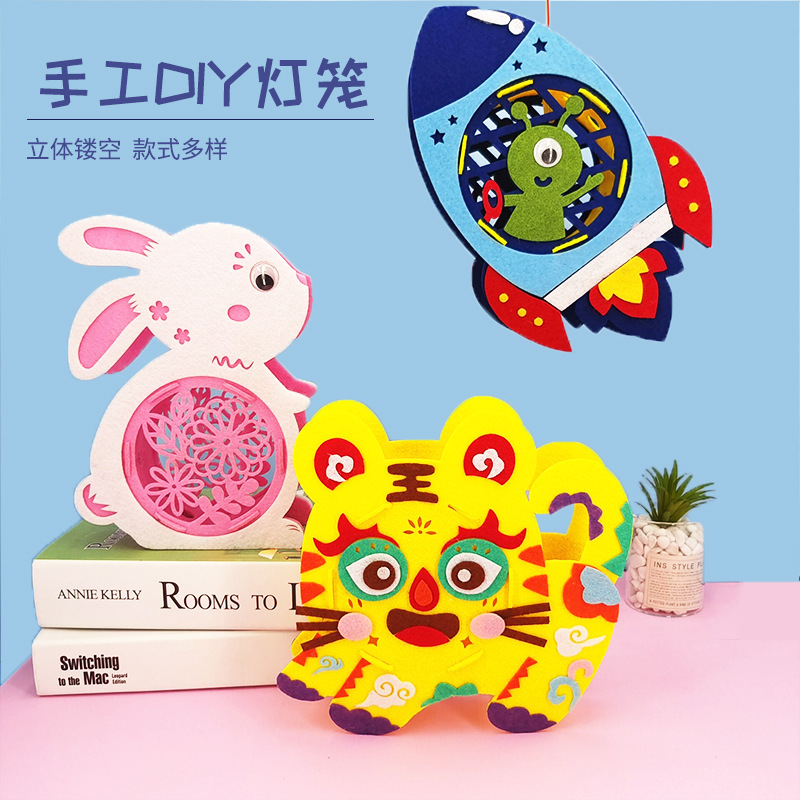 新年提灯手作りdiy製作材料バッグ不織布ウサギ花灯子供手発光提灯