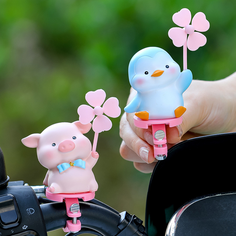 夏のかわいい風車の子豚の自転車の電気自動車のオートバイの装飾品の新型の自動車の置物の漫画の動物