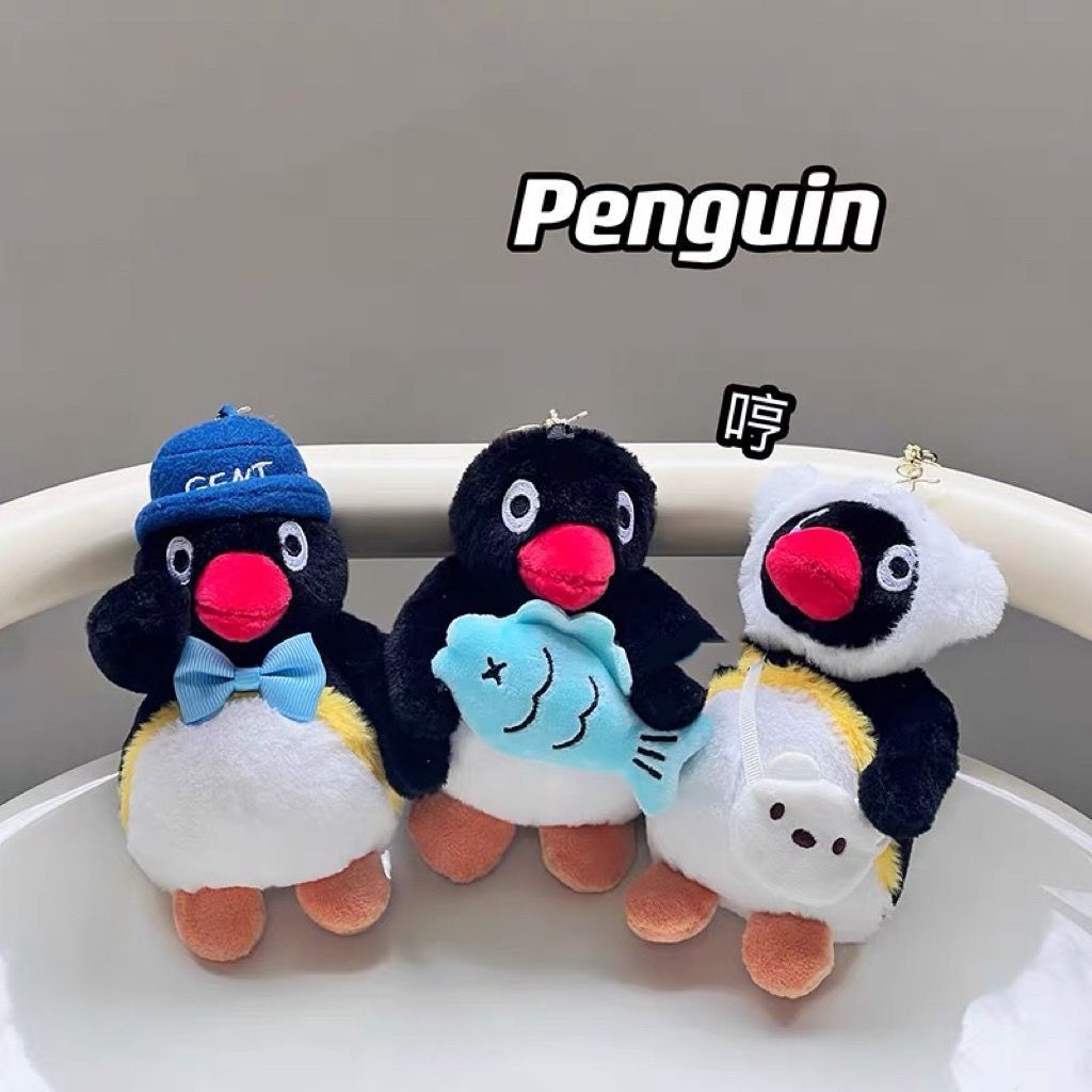 かわいい変装ペンギンのキーホルダーが醜い萌えてペンギンのぬいぐるみが市場のガチョウのバックパックに飾られている
