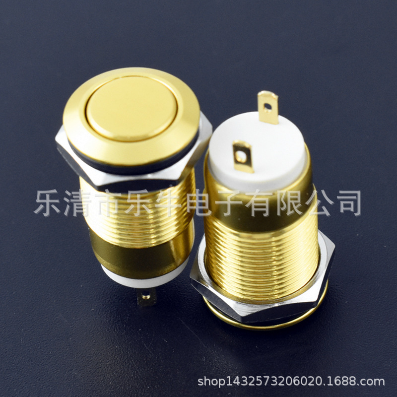 12/16/19mm金属ボタン黄色セルフリセット溶接足フラットヘッド防水点動発停小型スイッチ