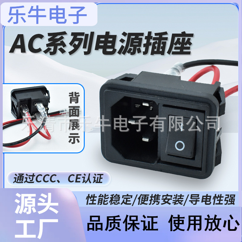 AC電源コンセントAC-02A品字中実針黒2脚無灯スイッチ二合一溶接線医療用具