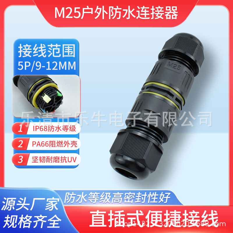 五芯LN-ZXM25T型防水コネクタナイロン無錠ネジIP68一進二出M25-41を供給します。