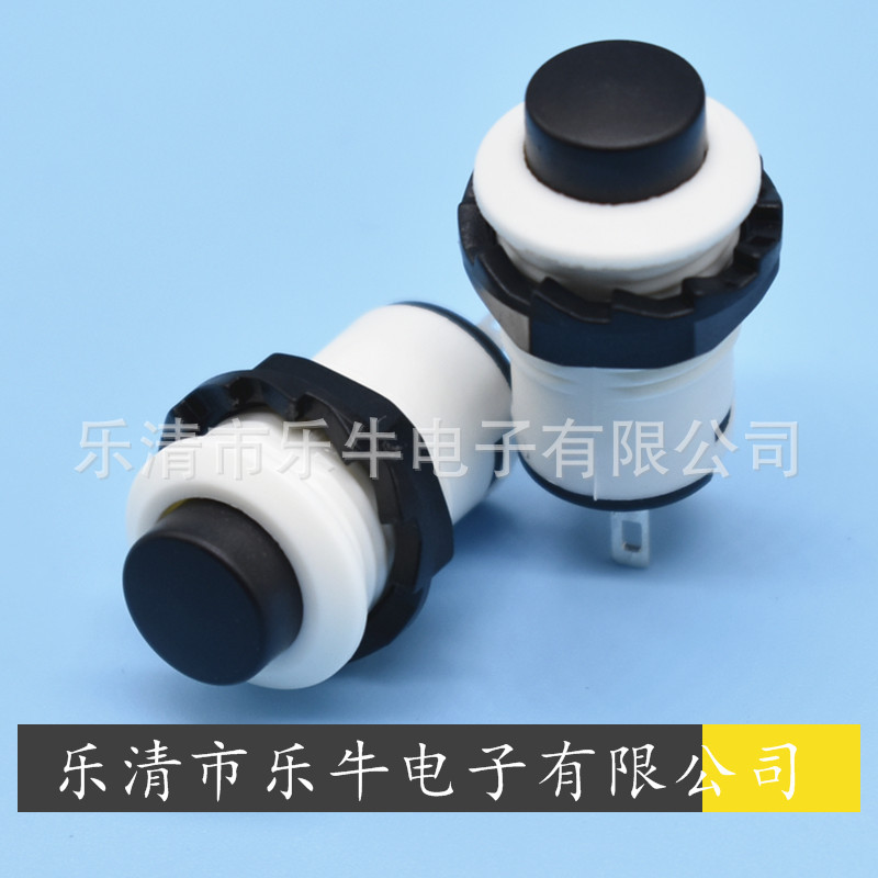 白い黒頭押しボタンスイッチDS-425セルフロックスイッチ穴開け12mmロックなしスイッチPBS1-10-3A