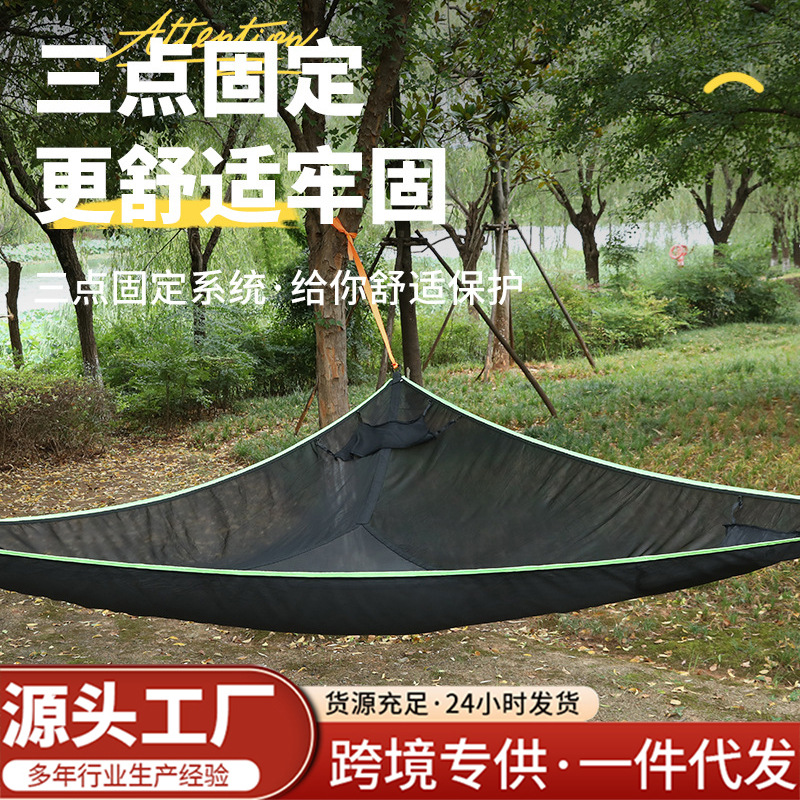 スポットクロスボーダートライアングルハンモックアウトドアキャンプ空中吊り下げ黒弾性シルクネットキャンプ通気性トライアングルハンモック