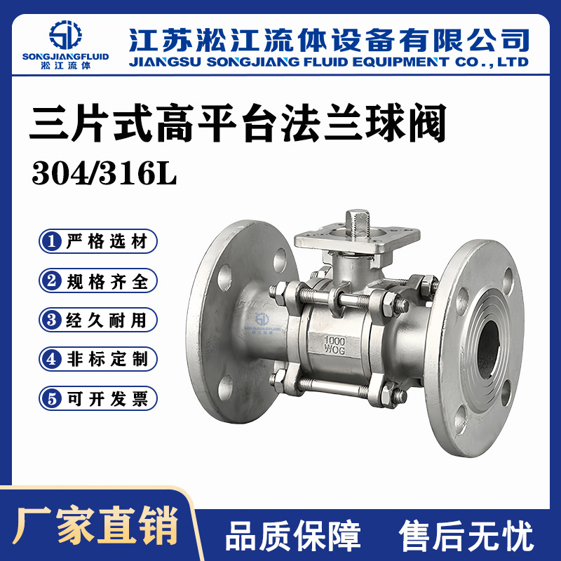 三枚式高定格フランジ球弁GQ41F-16Pステンレス304/316酸アルカリ腐食遮断弁