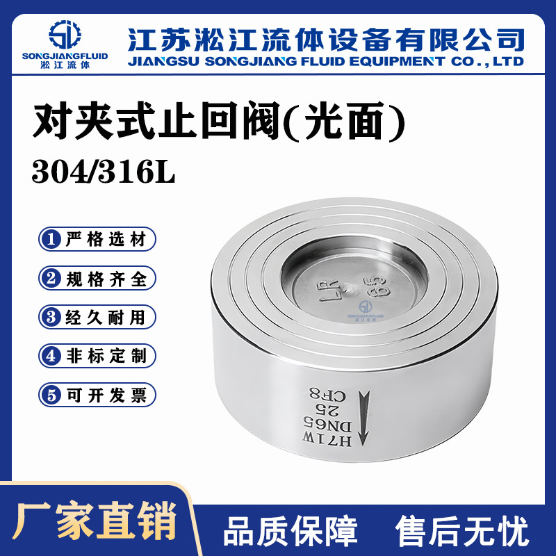 クリップ式バタフライ型逆止弁H76W-16Pステンレス二弁バタフライ型逆止弁工業配管逆止弁