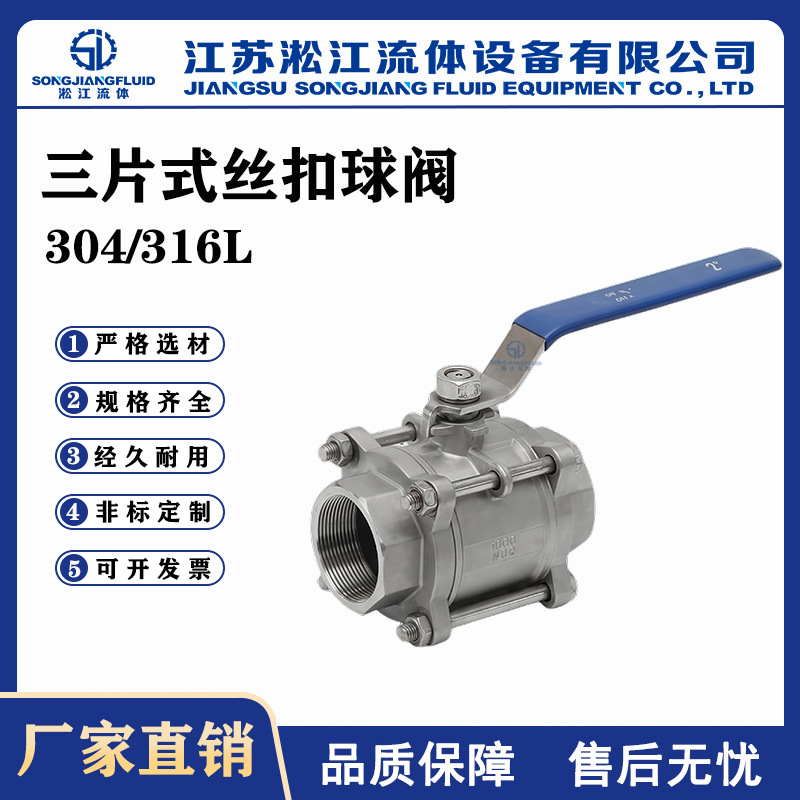 三枚式ボタンボールバルブQ11F-16Pステンレス工業配管内ねじボールバルブは酸アルカリ腐食に耐える
