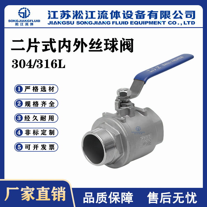 二枚式内外糸ボール弁Q11F-16Pステンレス工業配管内外ねじボール弁耐食