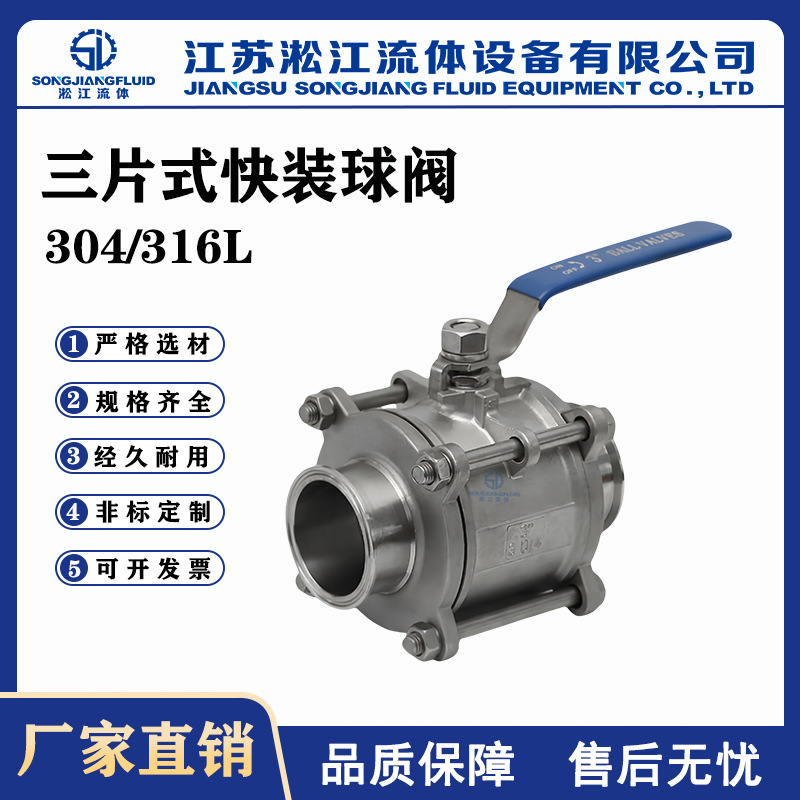 三枚式速装ボール弁Q81F-16Pステンレス食品衛生級クリップボール弁手動チャックボール弁