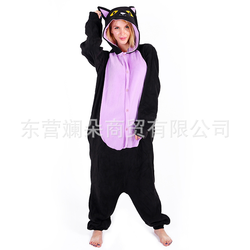 工場直販 ポーラーフリース パープル ミッドナイトキャット 漫画風 ワンピース 動物 パジャマ カップル向け パフォーマンス アニメ ホームウェア