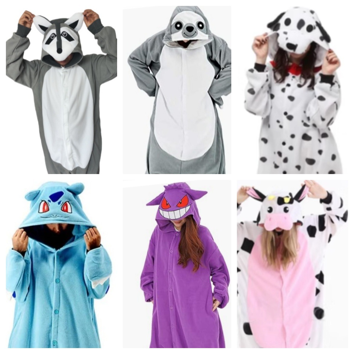 メーカー在庫あり 漫画風動物柄ワンピースパジャマ カービィ柄 フリース 長袖 カップル向け 秋冬 ルームウェア