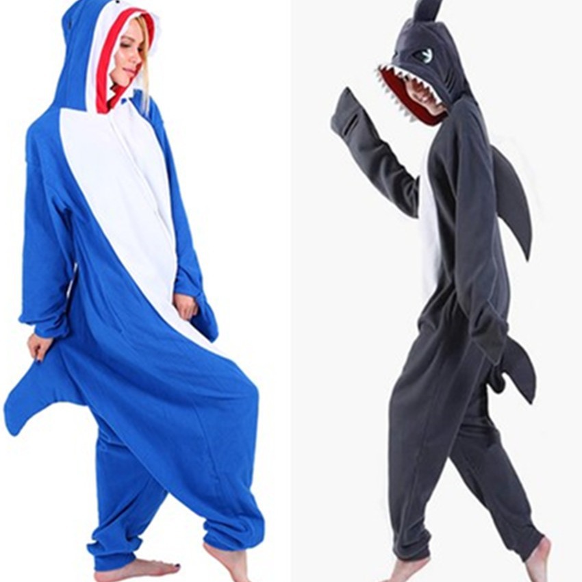 メーカー卸売フリース漫画動物ワンピースパジャマグレー砂魚青いサメカップルショールームウェア