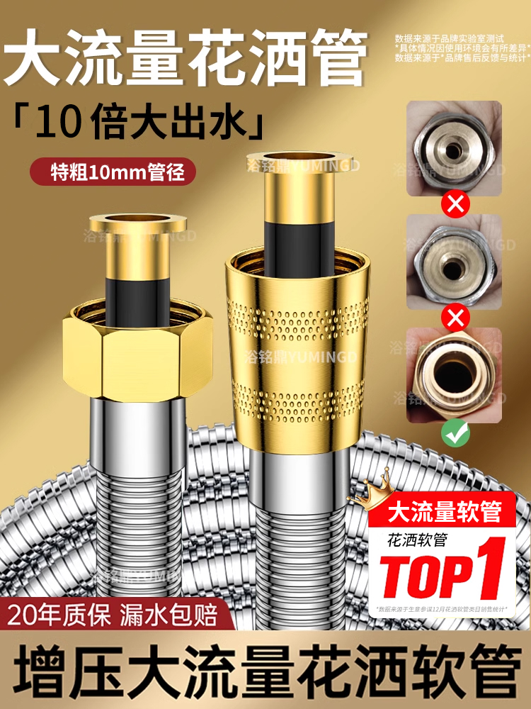 ステンレス鋼大流量シャワーホースシャワースプレーパイプ大口径ユニバーサルシャワーシャワーパイプノズルアクセサリー