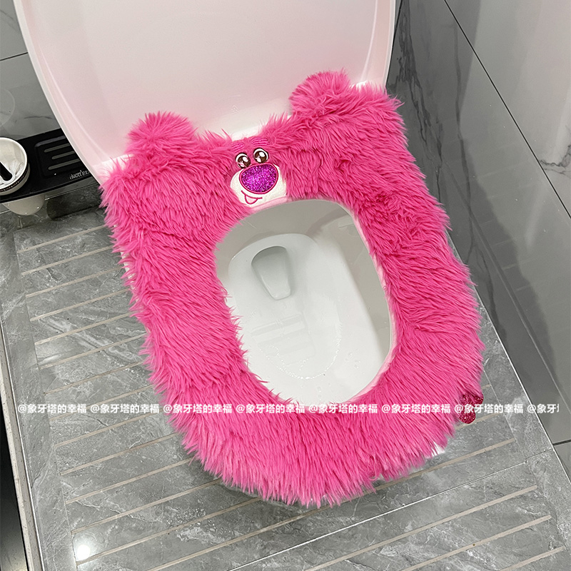 冬のかわいいアニメモンスター毛保温トイレマットボタン式トイレマット家庭用トイレリング