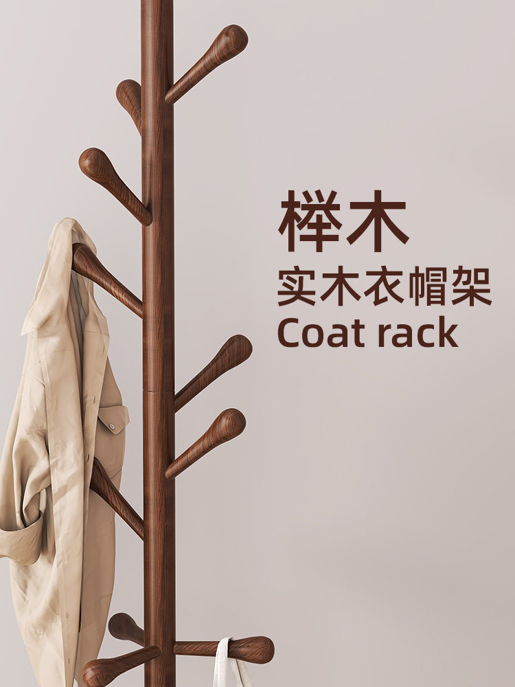 無垢材の衣類ラック床置きコートラック寝室ホーム衣類ラックシンプルな垂直ブナ材衣類ラック屋内バッグラック