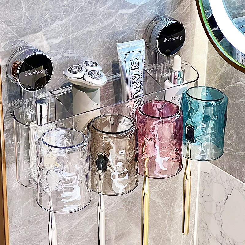 吸盤歯ブラシラック、パンチフリーうがい薬カップ、歯磨きカップ、壁掛け浴室電動歯ブラシ歯磨き粉ラック